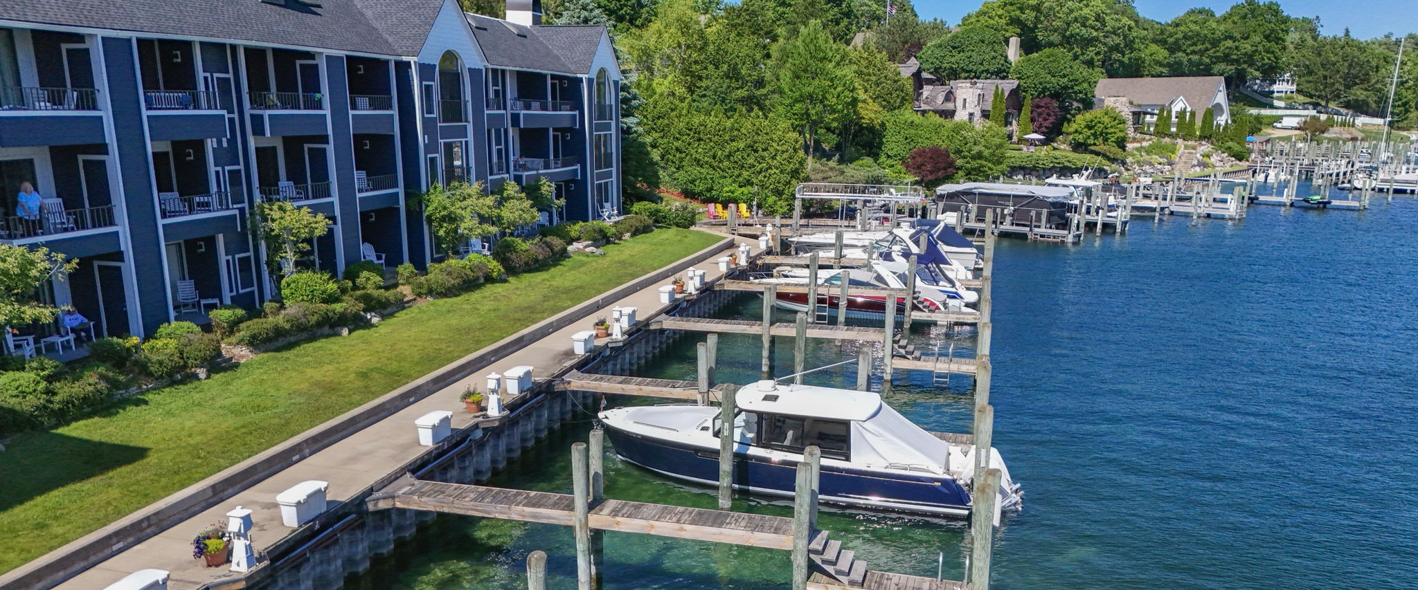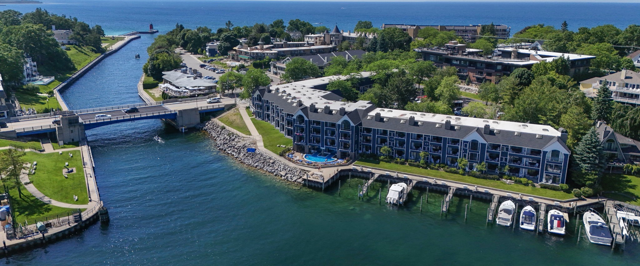 The Edgewater Inn is located on north shore of Round Lake harbor and the Pine River channel with prime drawbridge views. Just a short walk to Charlevoix’s finest dining, beaches, shopping and galleries, the Edgewater Inn is an ideal location for a short getaway, extended vacation, or wedding celebration. One-bedroom/one-bath and two-bedroom/two-bath units offer all the amenities needed for a comfortable home-away-from-home stay.