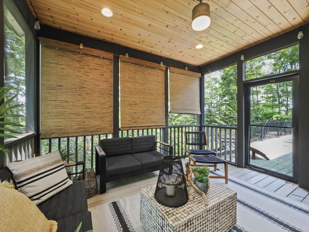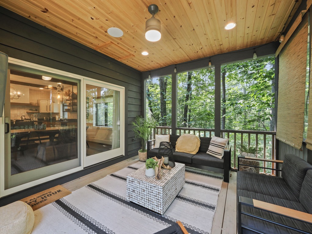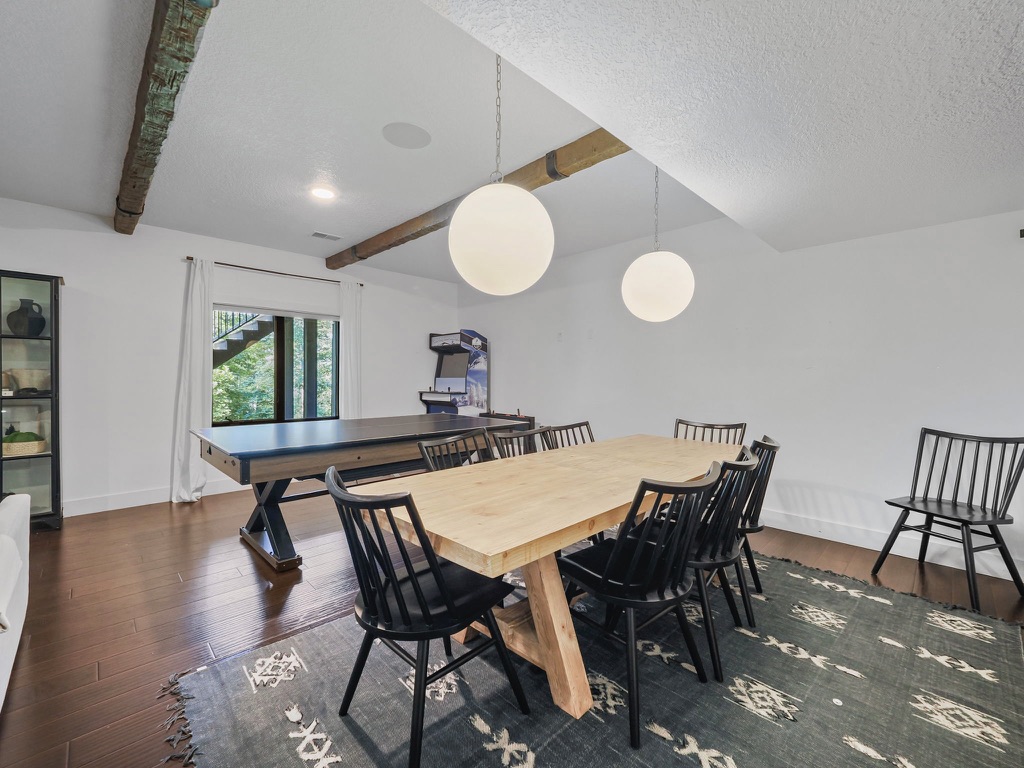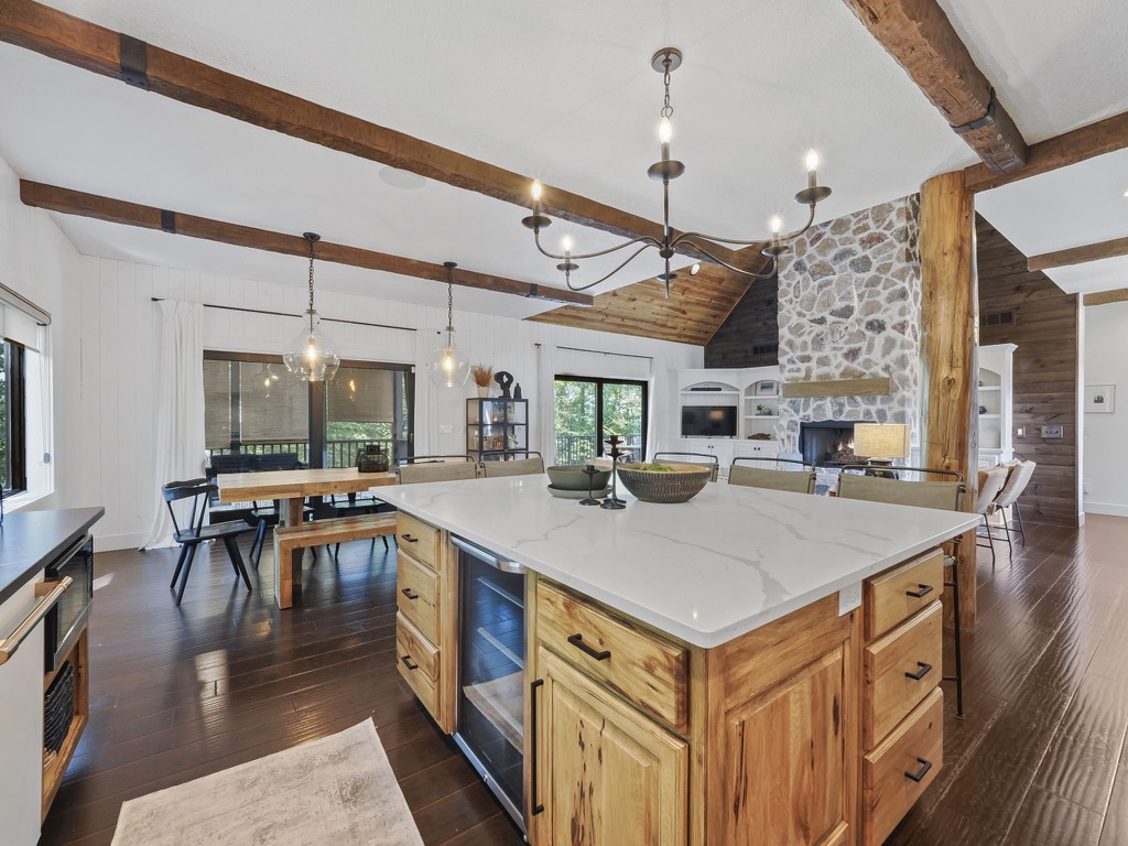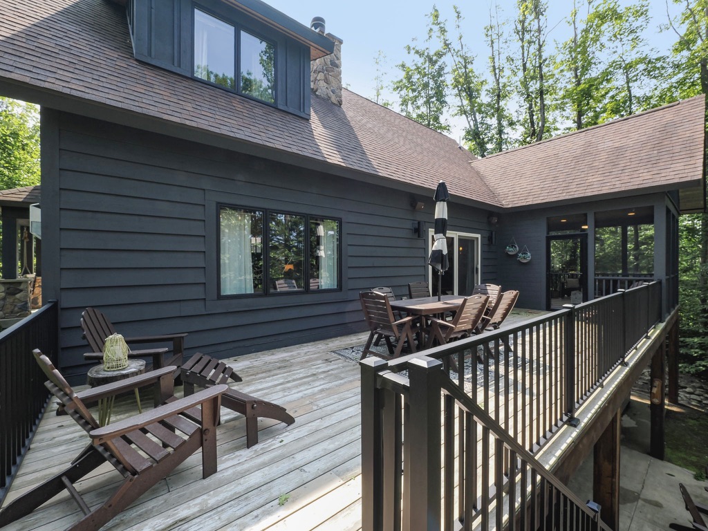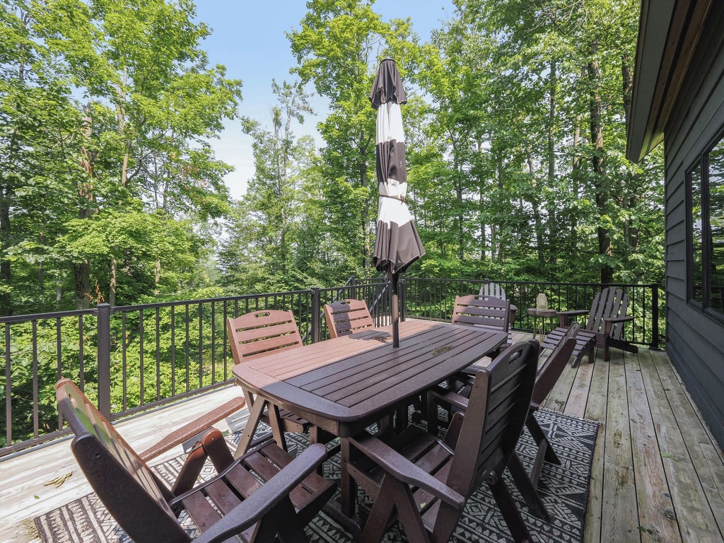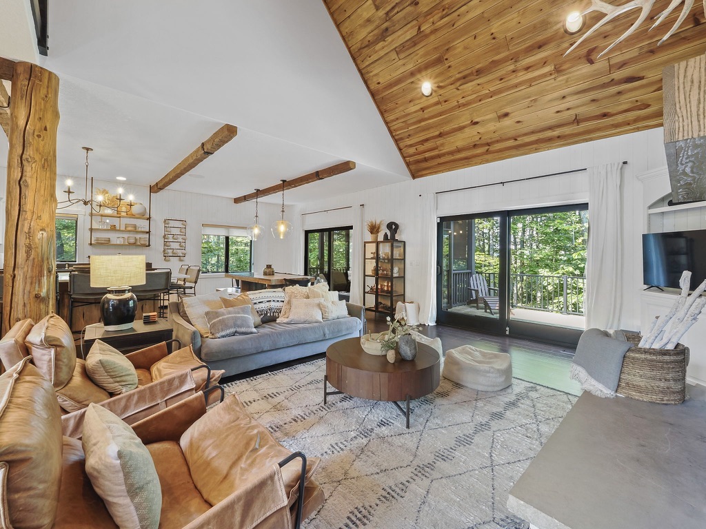 This highly customized home has custom ski storage, gas burning outdoor fire-pit, surround sound throughout the home, bumper pool table, PLUS two large living rooms, allowing everyone in the group to make themselves right at home. For special note, a brand new hot tub has been installed February 2021 and we look forward to guests enjoying this favorite amenity! Speaking of feeling at home, enjoy the spacious kitchen with seating at the dining room table for 10 PLUS 6 bar stools surrounding the oversized island. There is also a 3 season room just off of the dining area with additional seating and amazing views tucked in the beautiful wooded area that surrounds the home.
