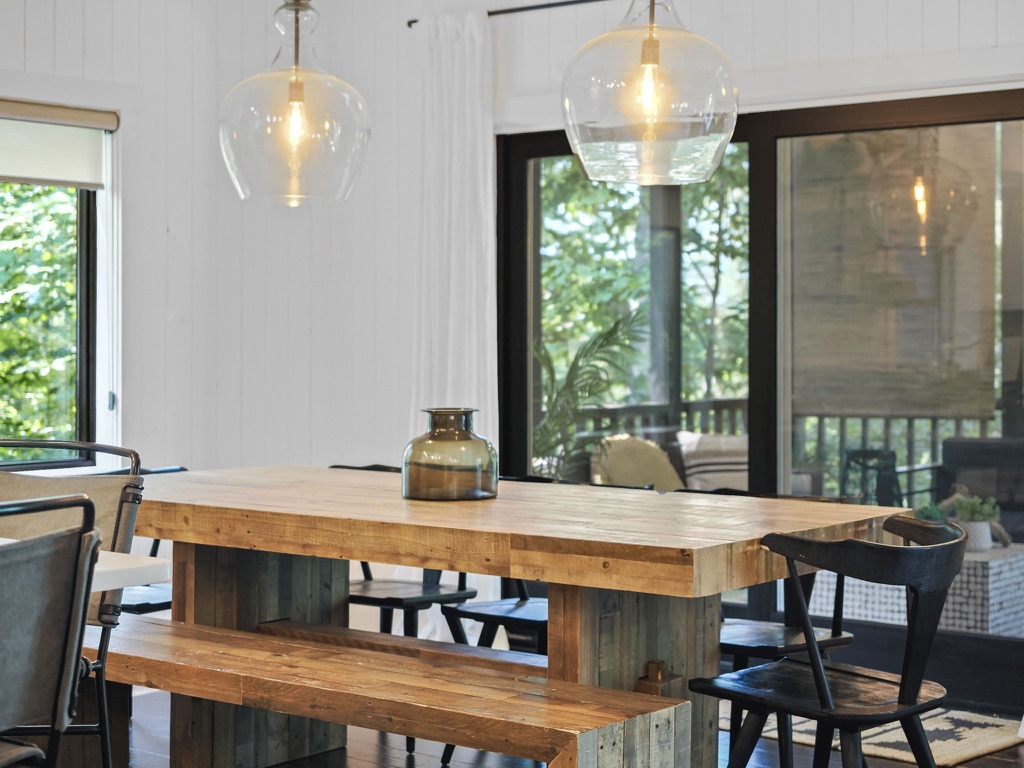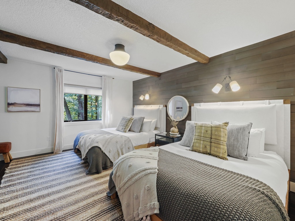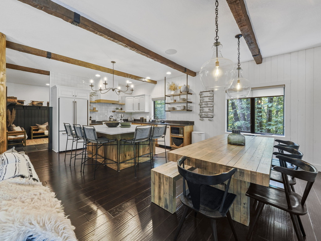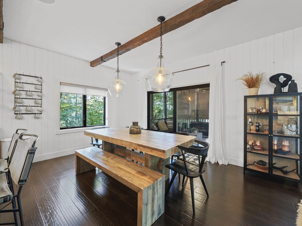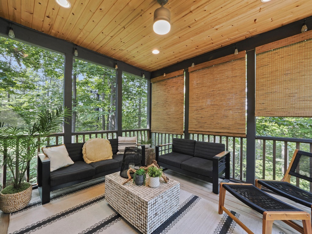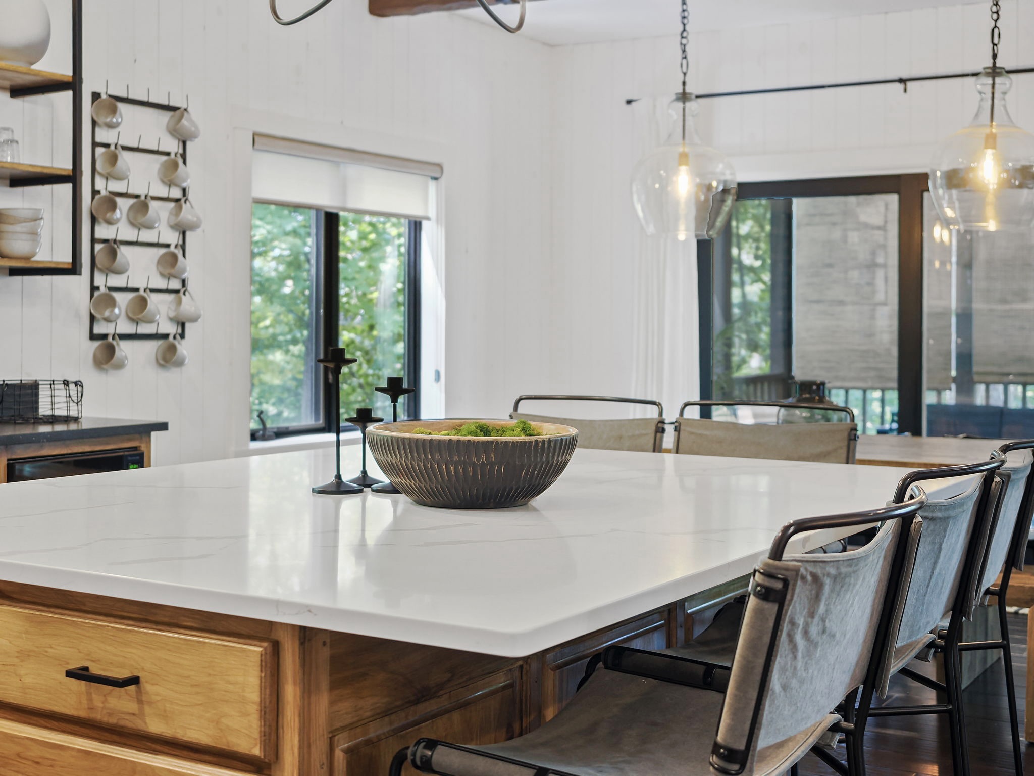This highly customized home has custom ski storage, gas burning outdoor fire-pit, surround sound throughout the home, bumper pool table, PLUS two large living rooms, allowing everyone in the group to make themselves right at home. For special note, a brand new hot tub has been installed February 2021 and we look forward to guests enjoying this favorite amenity! Speaking of feeling at home, enjoy the spacious kitchen with seating at the dining room table for 10 PLUS 6 bar stools surrounding the oversized island. There is also a 3 season room just off of the dining area with additional seating and amazing views tucked in the beautiful wooded area that surrounds the home.