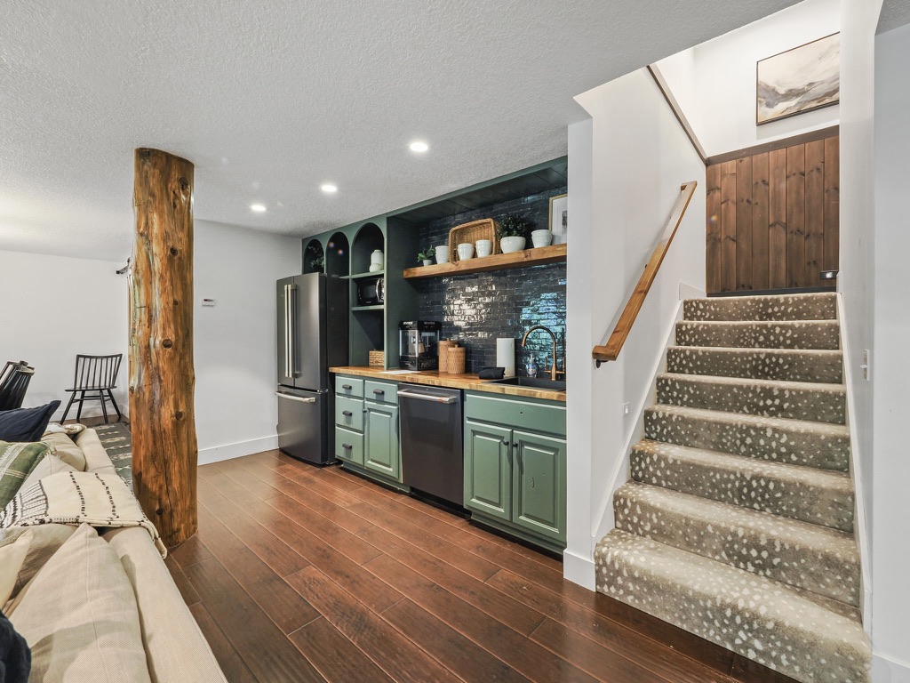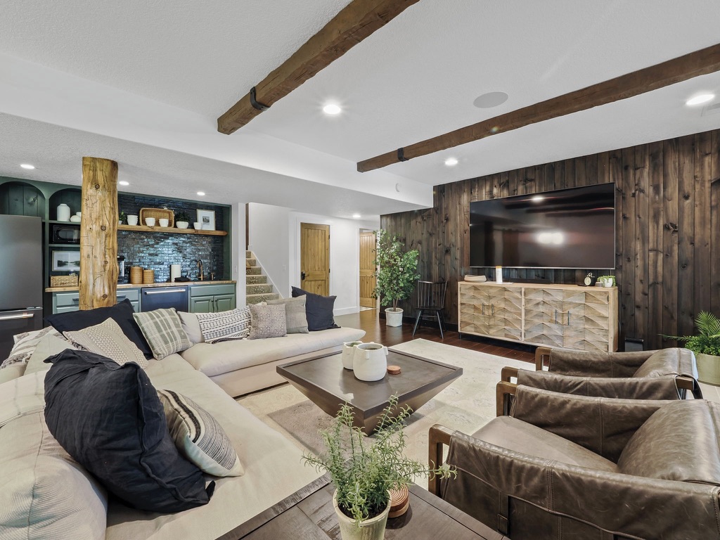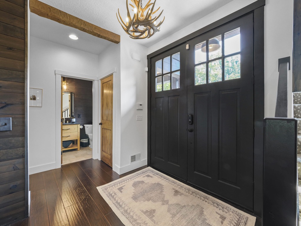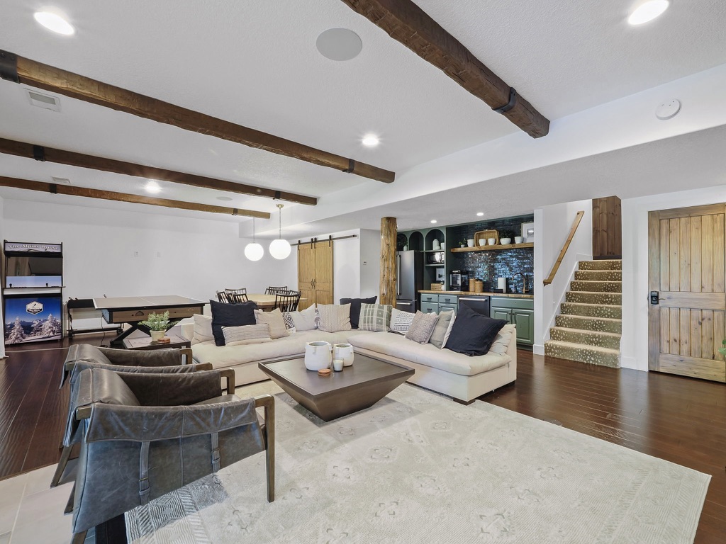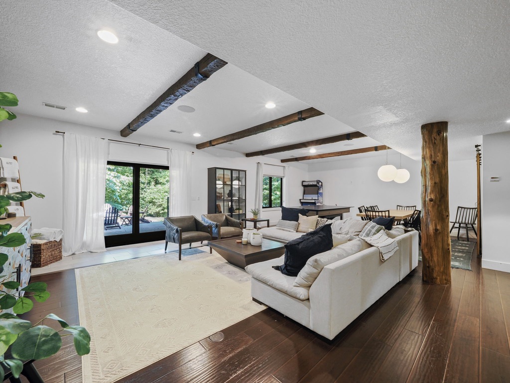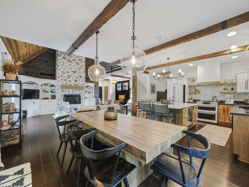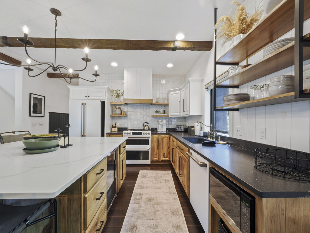 This highly customized home has custom ski storage, gas burning outdoor fire-pit, surround sound throughout the home, bumper pool table, PLUS two large living rooms, allowing everyone in the group to make themselves right at home. For special note, a brand new hot tub has been installed February 2021 and we look forward to guests enjoying this favorite amenity! Speaking of feeling at home, enjoy the spacious kitchen with seating at the dining room table for 10 PLUS 6 bar stools surrounding the oversized island. There is also a 3 season room just off of the dining area with additional seating and amazing views tucked in the beautiful wooded area that surrounds the home.