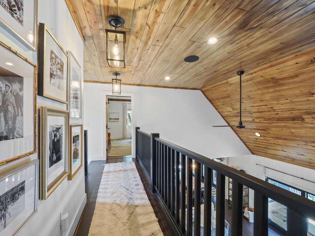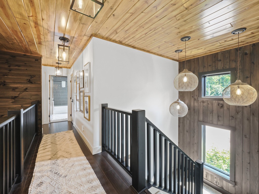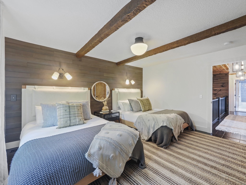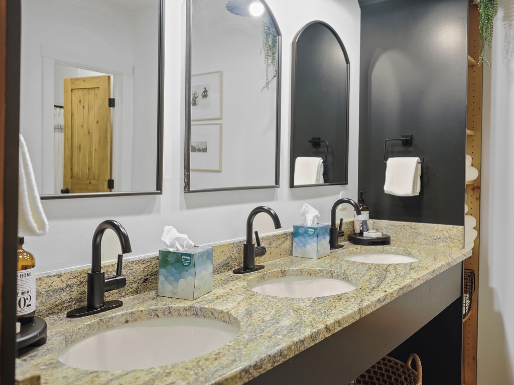 When you head upstairs where you will find 2 additional bedrooms; featuring a king bedroom, 2 Queen beds in the other bedroom and a shared full bathroom with double sinks and granite countertops. This is a bonus feature as it gives plenty of space for adults to have some quiet time, while the kids enjoy their own private area downstairs!