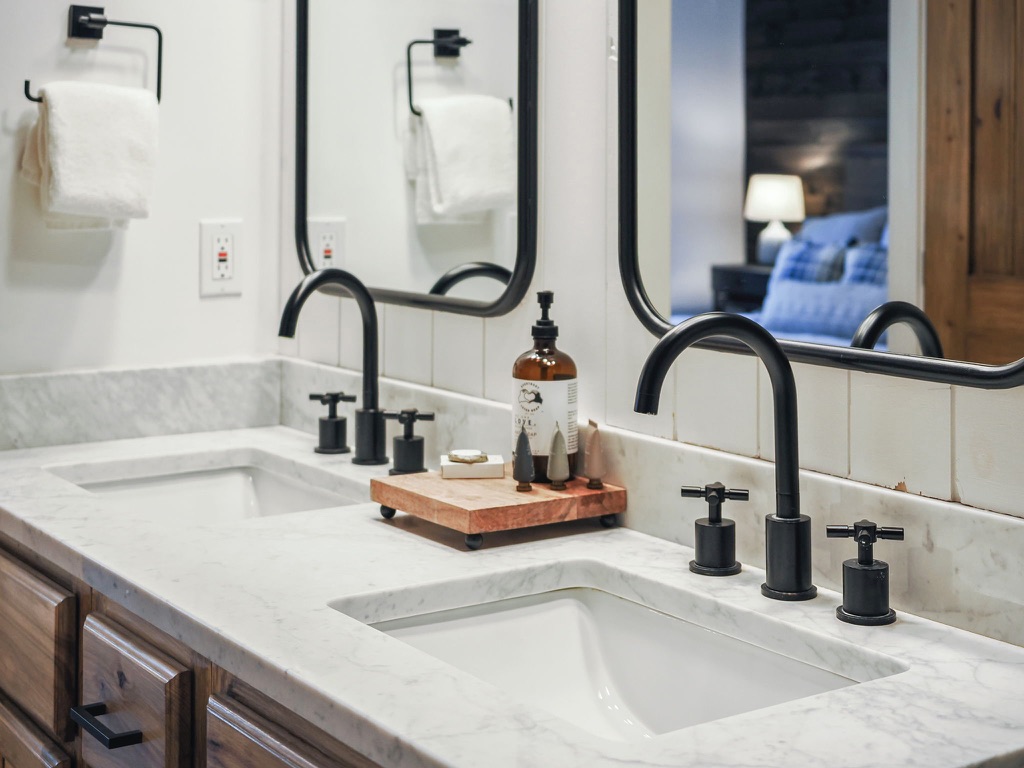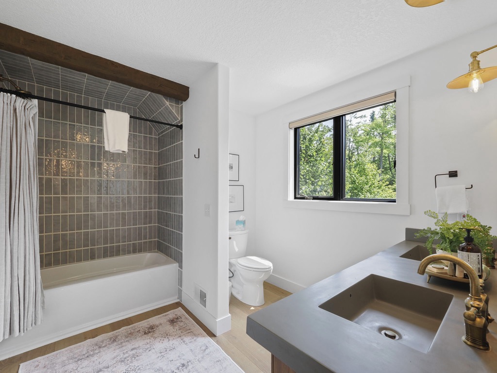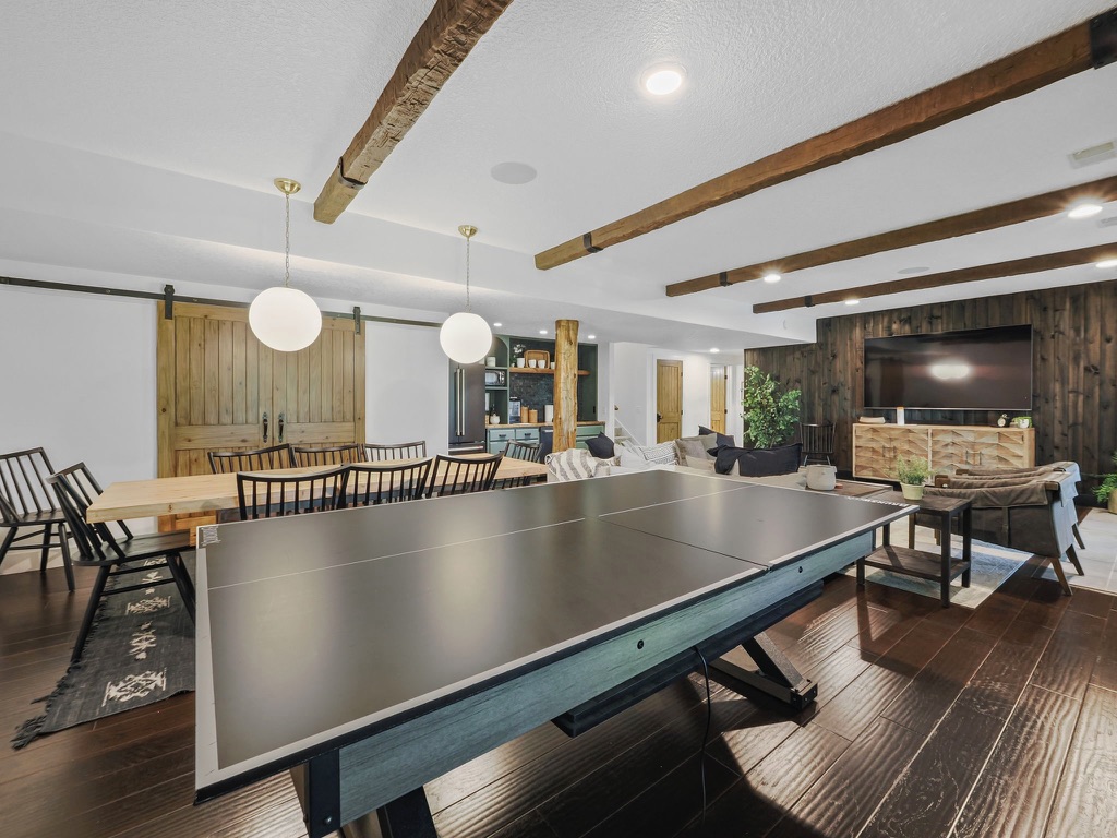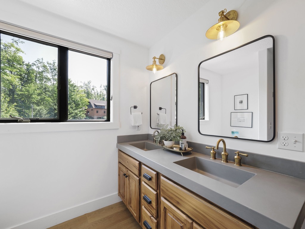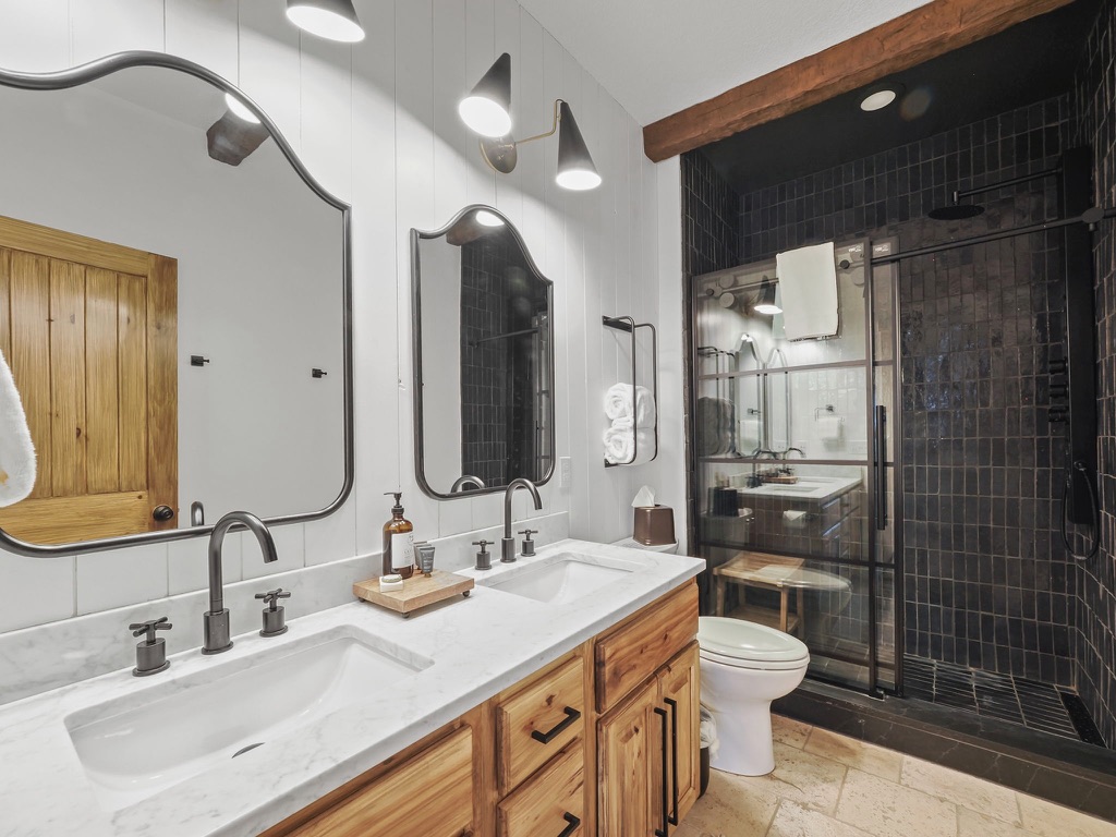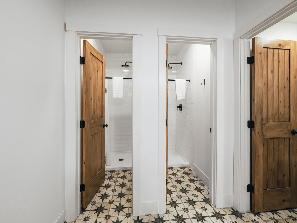 Located on the lower level, "The Bunk Room" features eight custom built bunk beds that can sleep young children and young adults! The lower bathroom has triple sinks and an incredibly ingenious shower set up with 2 single stalled showers so more people can get ready at once.